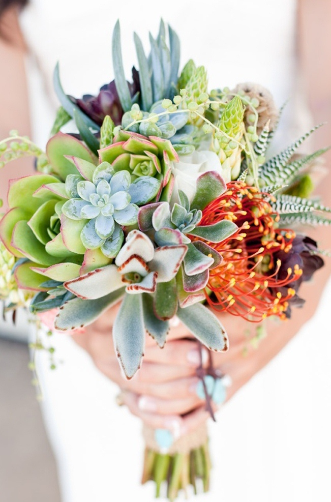 V svadobných kyticiach zmiešané s inými druhmi kvetov vyzerajú sukulenty absolútne fantasticky.